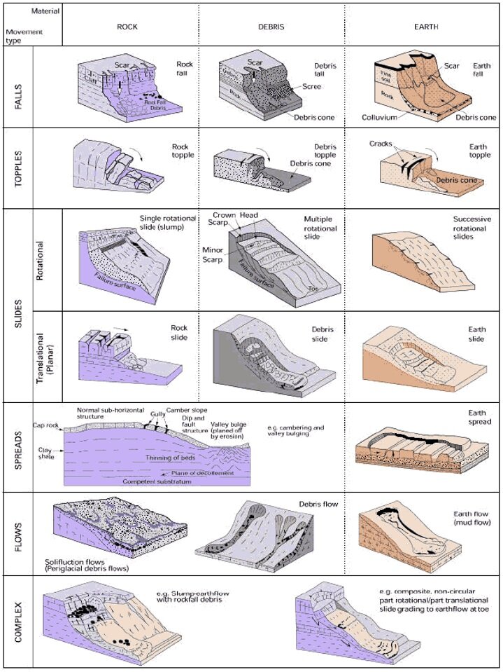 landslides, mass movements, classification, examples.